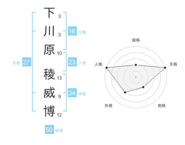 下川原 稜威博さんを姓名の画数から五運を鑑定
