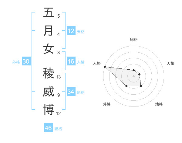 五月女 稜威博さんを姓名の画数から五運を鑑定