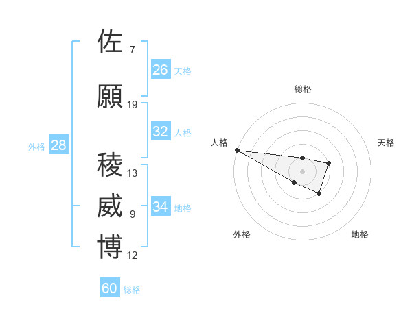 佐願 稜威博さんの総格は60画の1点!