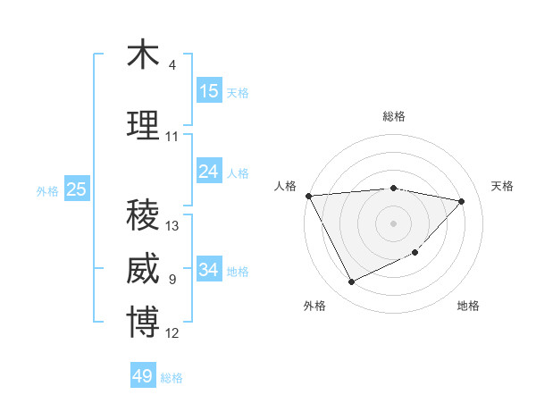木理 稜威博さんの天格は15画の4点!