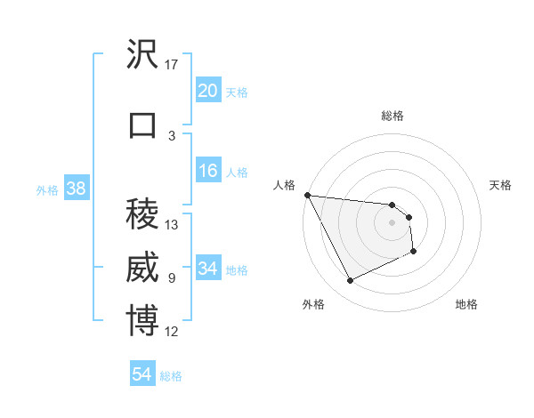 沢口 稜威博さんの外格は38画の4点