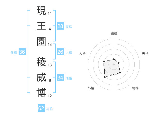 現王園 稜威博さんの外格は36画の3点