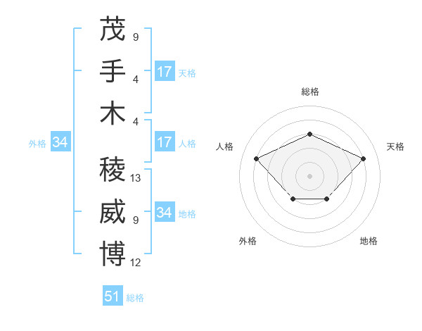 茂手木 稜威博さんの総格は51画の3点