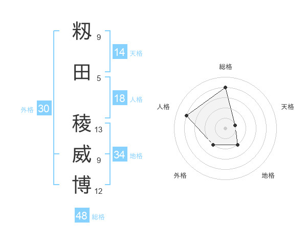 籾田 稜威博さんを姓名の画数から五運を鑑定