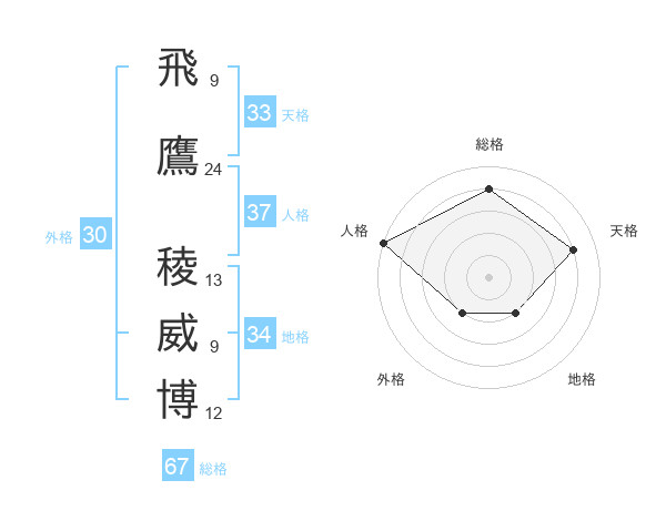 飛鷹 稜威博さんの総格は67画の4点!