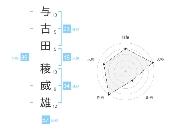 与古田 稜威雄さんを姓名の画数から五運を鑑定