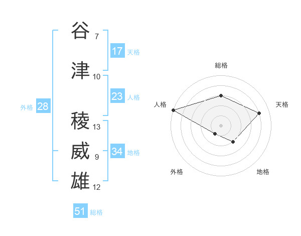 谷津 稜威雄さんを姓名の画数から五運を鑑定