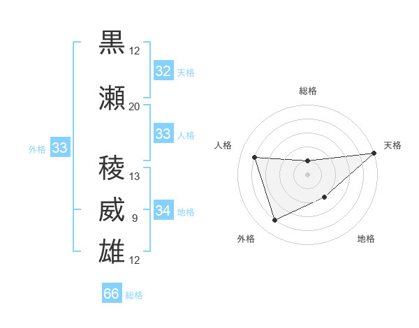 黒瀬 稜威雄さんを姓名の画数から五運を鑑定