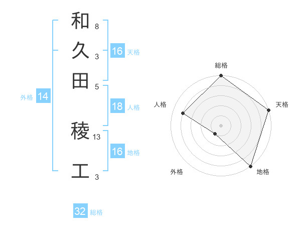 和久田 稜工さんの総格は32画の5点!