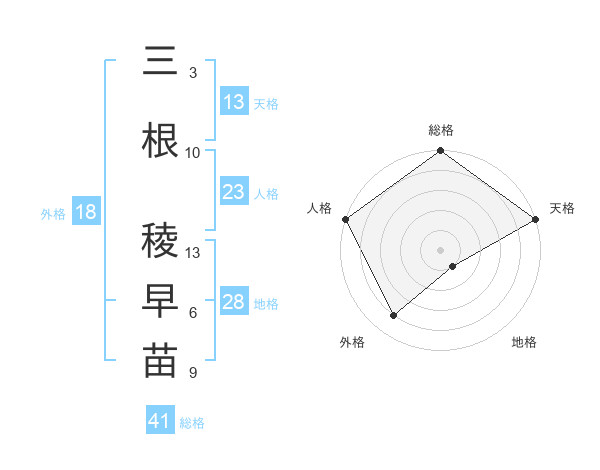 三根 稜早苗さんを姓名の画数から五運を鑑定