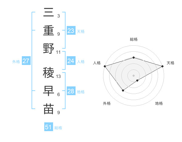 三重野 稜早苗さんを姓名の画数から五運を鑑定