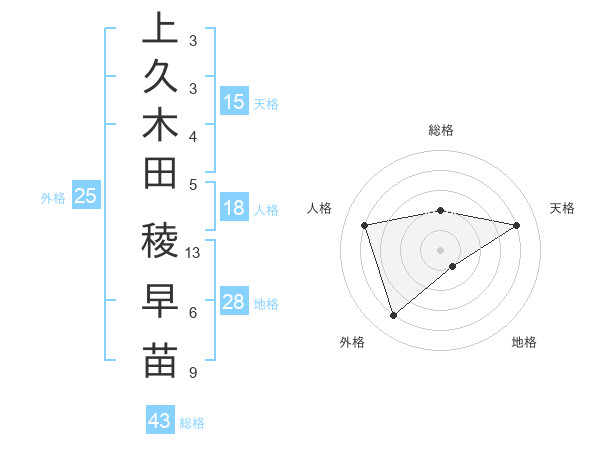 上久木田 稜早苗さんを姓名の画数から五運を鑑定