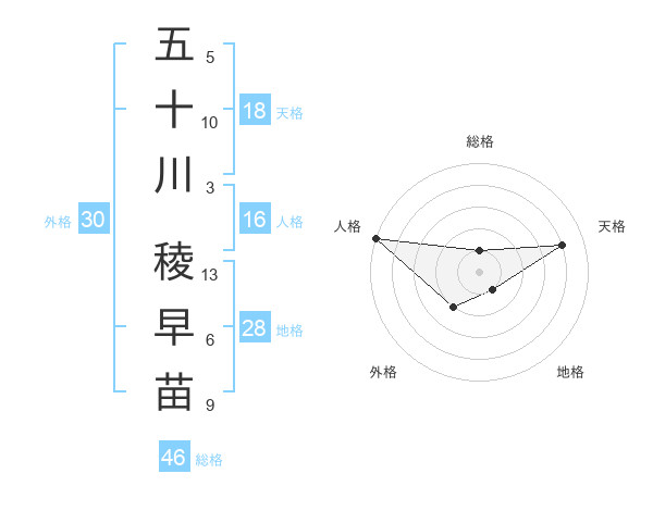 五十川 稜早苗さんの天格は18画の4点!