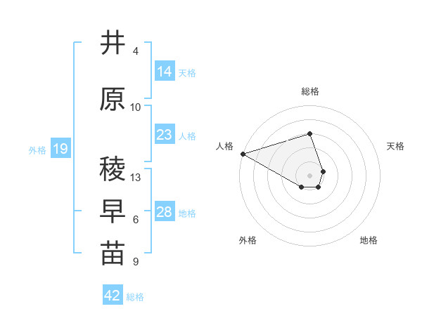 井原 稜早苗さんを姓名の画数から五運を鑑定