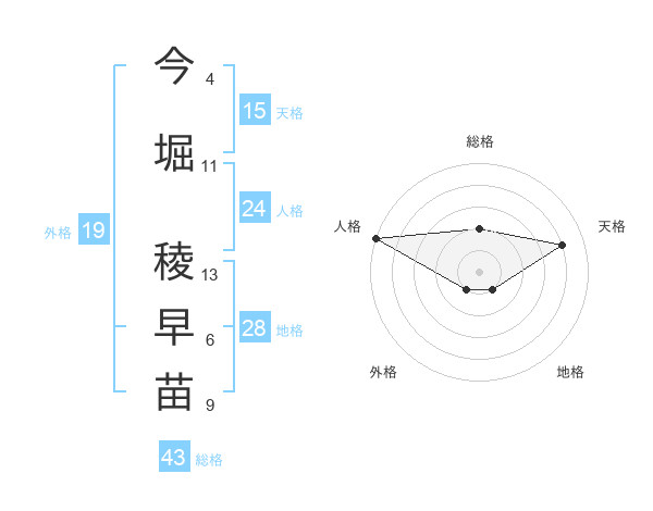 今堀 稜早苗さんの総格は43画の2点
