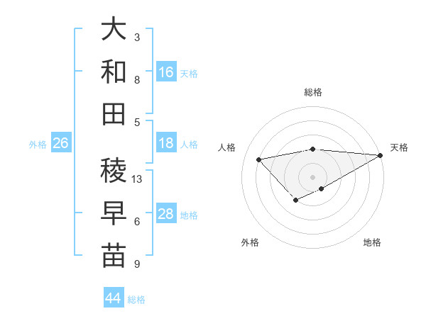 大和田 稜早苗さんを姓名の画数から五運を鑑定