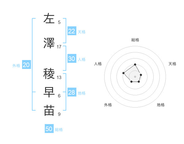 左澤 稜早苗さんの総格は50画の2点!