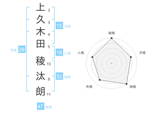 上久木田 稜汰朗さんの総格は47画の5点!