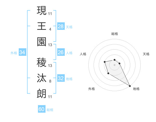 現王園 稜汰朗さんを姓名の画数から五運を鑑定