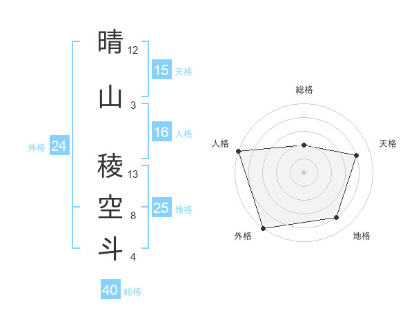 晴山 稜空斗さんの外格は24画の5点!