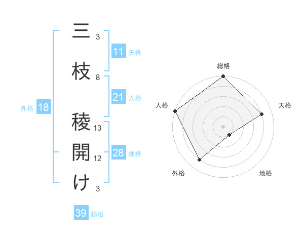 三枝 稜開けさんを姓名の画数から五運を鑑定