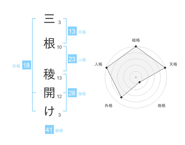 三根 稜開けさんを姓名の画数から五運を鑑定