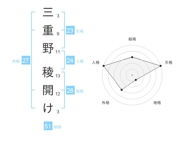 三重野 稜開けさんを姓名の画数から五運を鑑定
