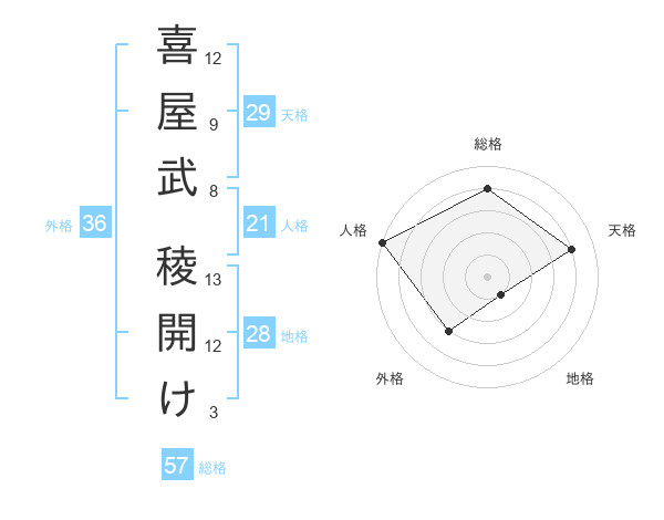 喜屋武 稜開けさんを姓名の画数から五運を鑑定
