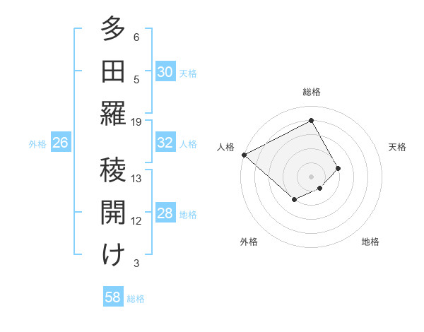 多田羅 稜開けさんを姓名の画数から五運を鑑定
