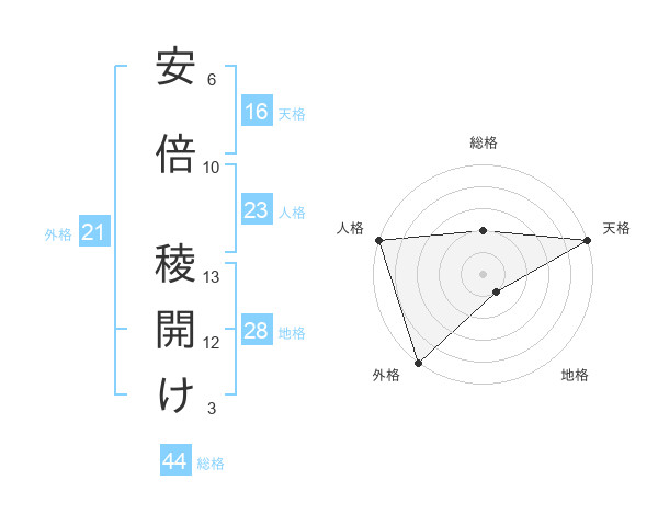 安倍 稜開けさんを姓名の画数から五運を鑑定