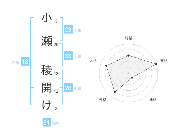 小瀬 稜開けさんの総格は51画の3点!