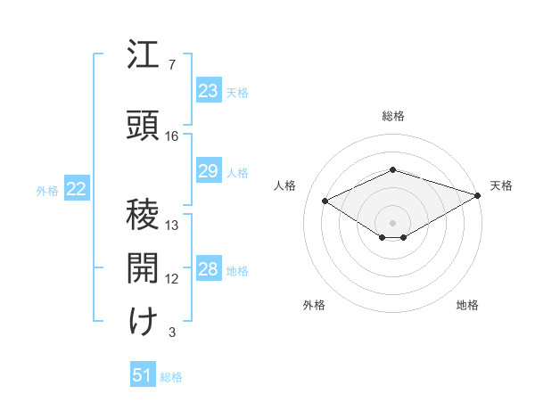 江頭 稜開けさんの総格は51画の3点!