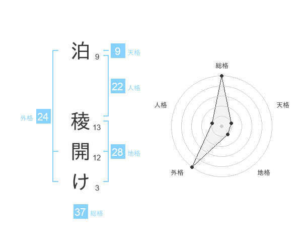 泊 稜開けさんを姓名の画数から五運を鑑定