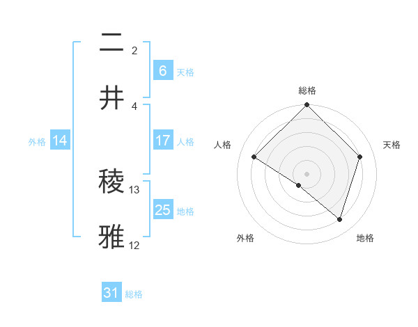 二井 稜雅さんを姓名の画数から五運を鑑定