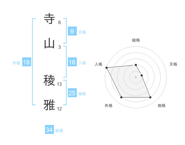 寺山 稜雅さんの総格は34画の2点!