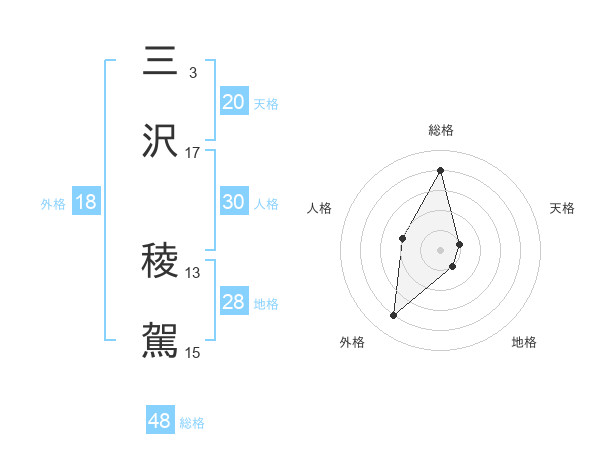 三沢 稜駕さんの天格は20画の1点!