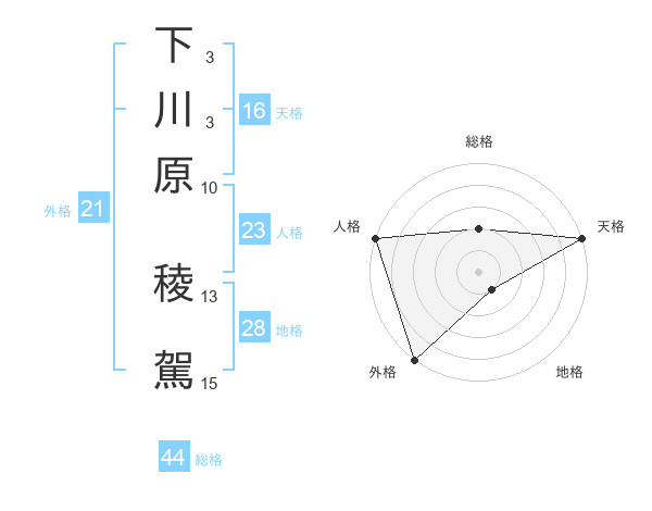 下川原 稜駕さんを姓名の画数から五運を鑑定