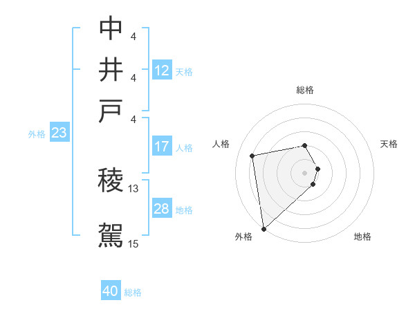 中井戸 稜駕さんを姓名の画数から五運を鑑定