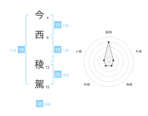 今西 稜駕さんを姓名の画数から五運を鑑定