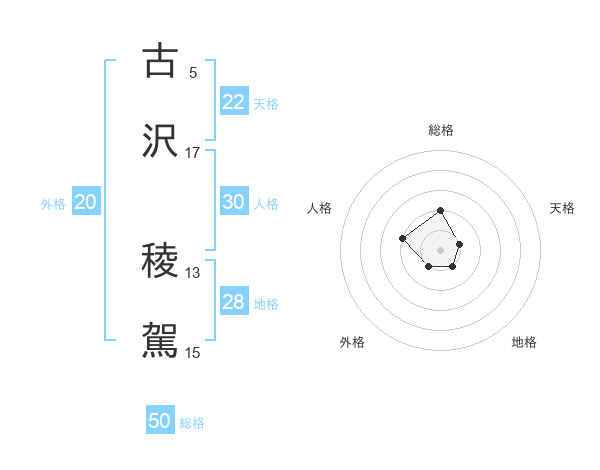 古沢 稜駕さんを姓名の画数から五運を鑑定
