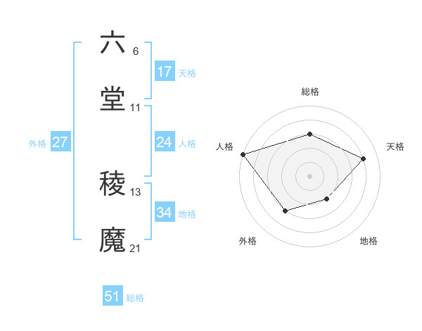 六堂 稜魔さんを姓名の画数から五運を鑑定