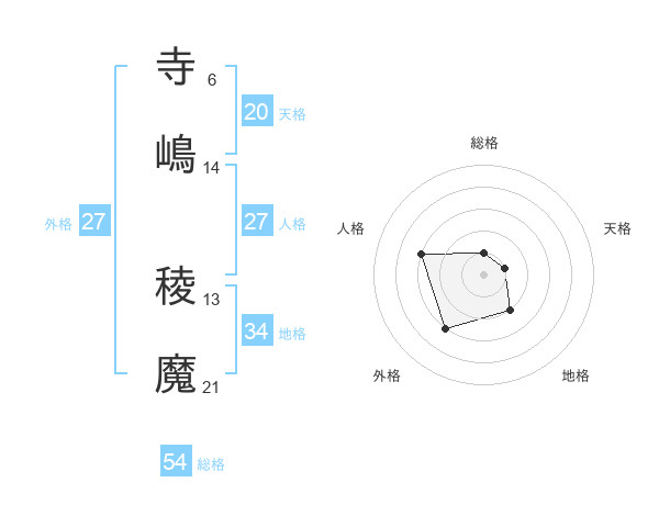 寺嶋 稜魔さんを姓名の画数から五運を鑑定