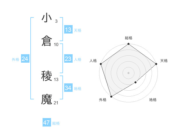 小倉 稜魔さんを姓名の画数から五運を鑑定