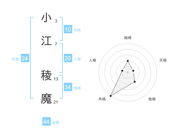 小江 稜魔さんの総格は44画の2点!