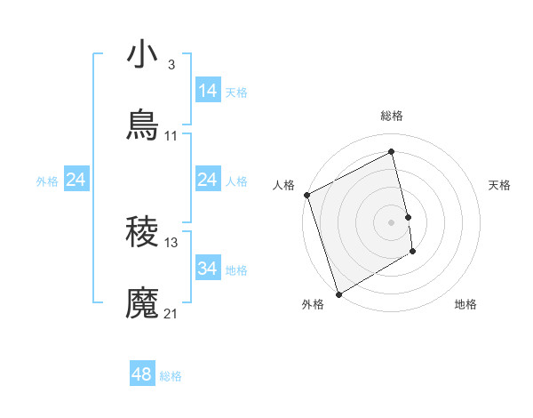 小鳥 稜魔さんを姓名の画数から五運を鑑定