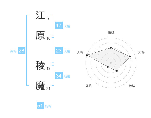 江原 稜魔さんを姓名の画数から五運を鑑定