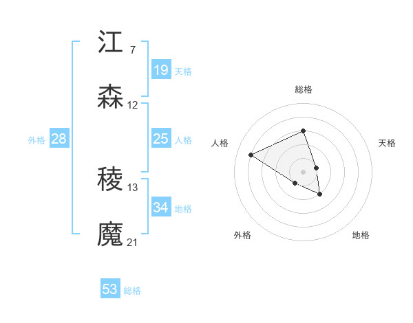 江森 稜魔さんの総格は53画の3点!