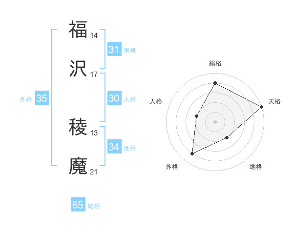 福沢 稜魔さんを姓名の画数から五運を鑑定