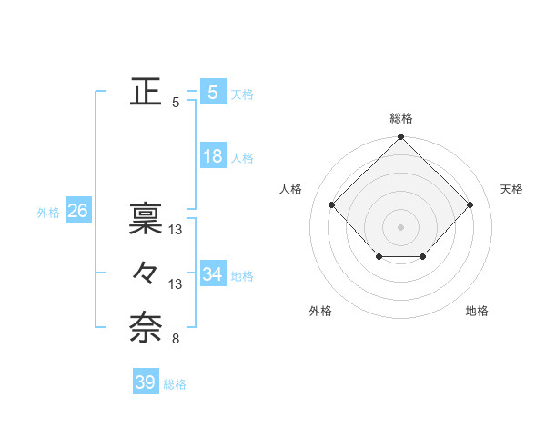 正 稟々奈さんの天格は5画の4点!
