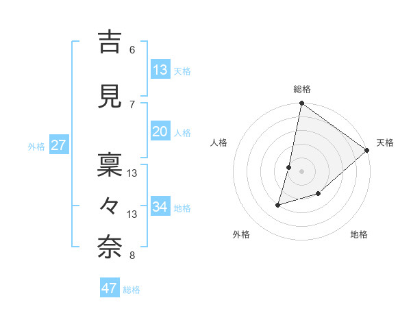 吉見 稟々奈さんを姓名の画数から五運を鑑定